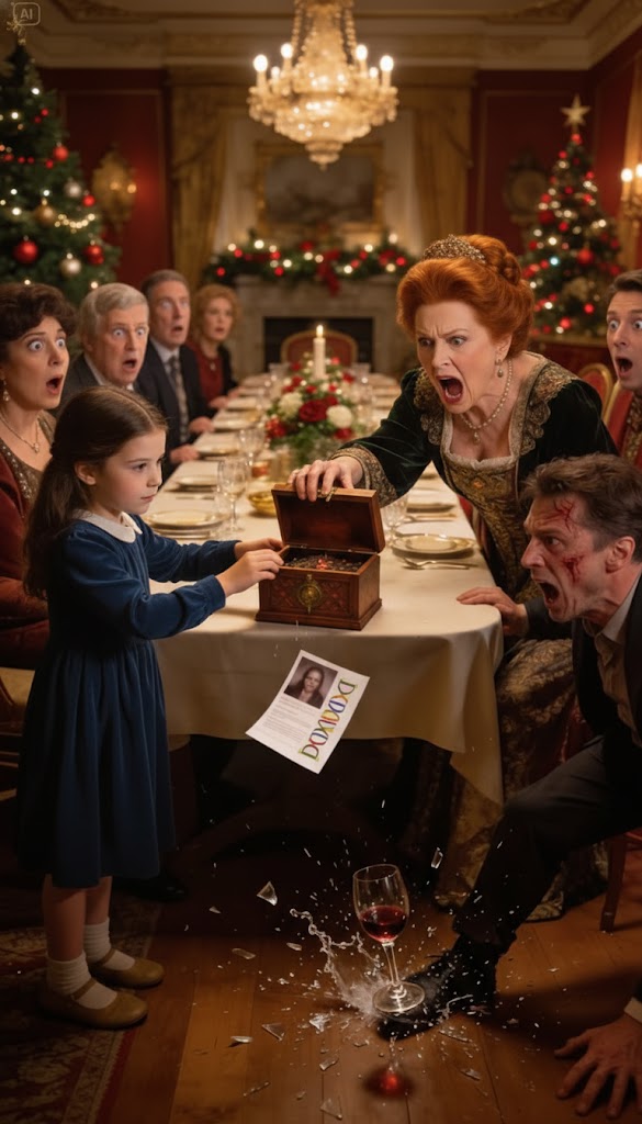The dining room was full of laughter, the table set with golden flatware and holiday